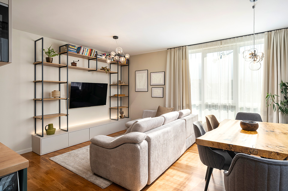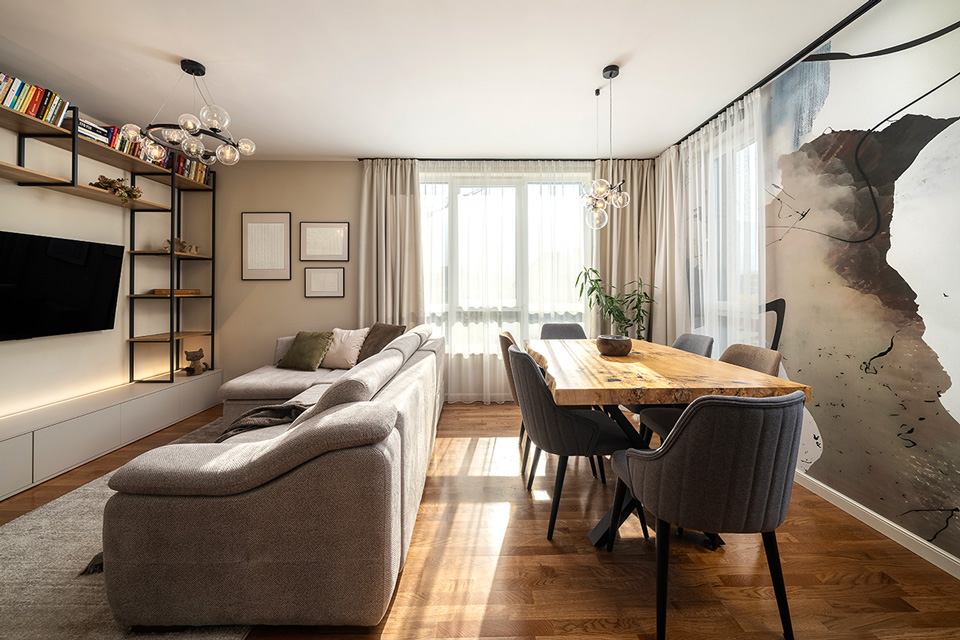 В типичния апартамент ново строителство от 85.к.м. с две спални, използвахме всеки сантиметър функционално и умно, за да има място за всичките му обитатели.